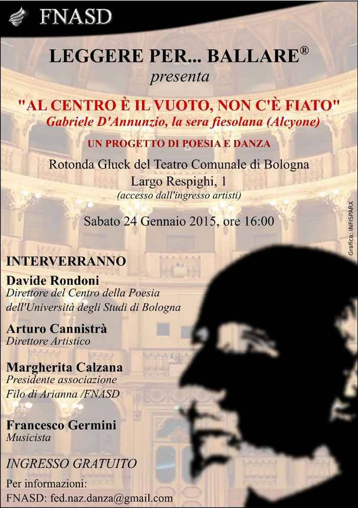 ‘Al centro è il vuoto, non c‘è fiato‘ è un’iniziativa dedicata al poeta Gabriele D’Annunzio nell'ambito del progetto Fare Leggere Tutti "Il mio D'annunzio", che combina la danza con la poesia dell’autore pescarese.